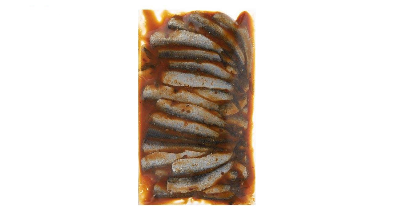 کیلکا سرزده و شکم خالی مرینت شده با سس هات چیلی در بسته بندی 350 گرمی