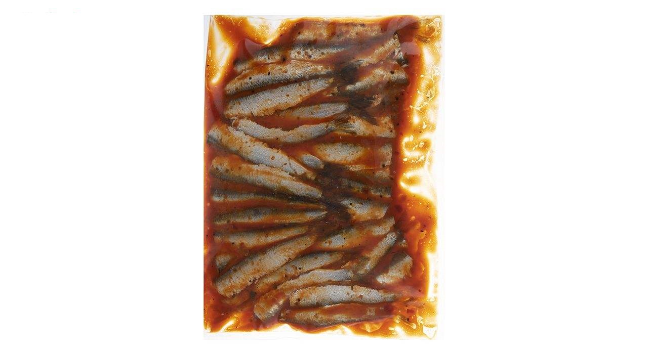 کیلکا سرزده و شکم خالی مرینت شده با سس هات چیلی در بسته بندی 350 گرمی